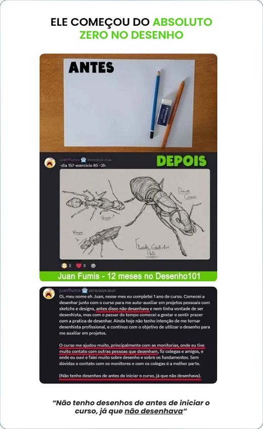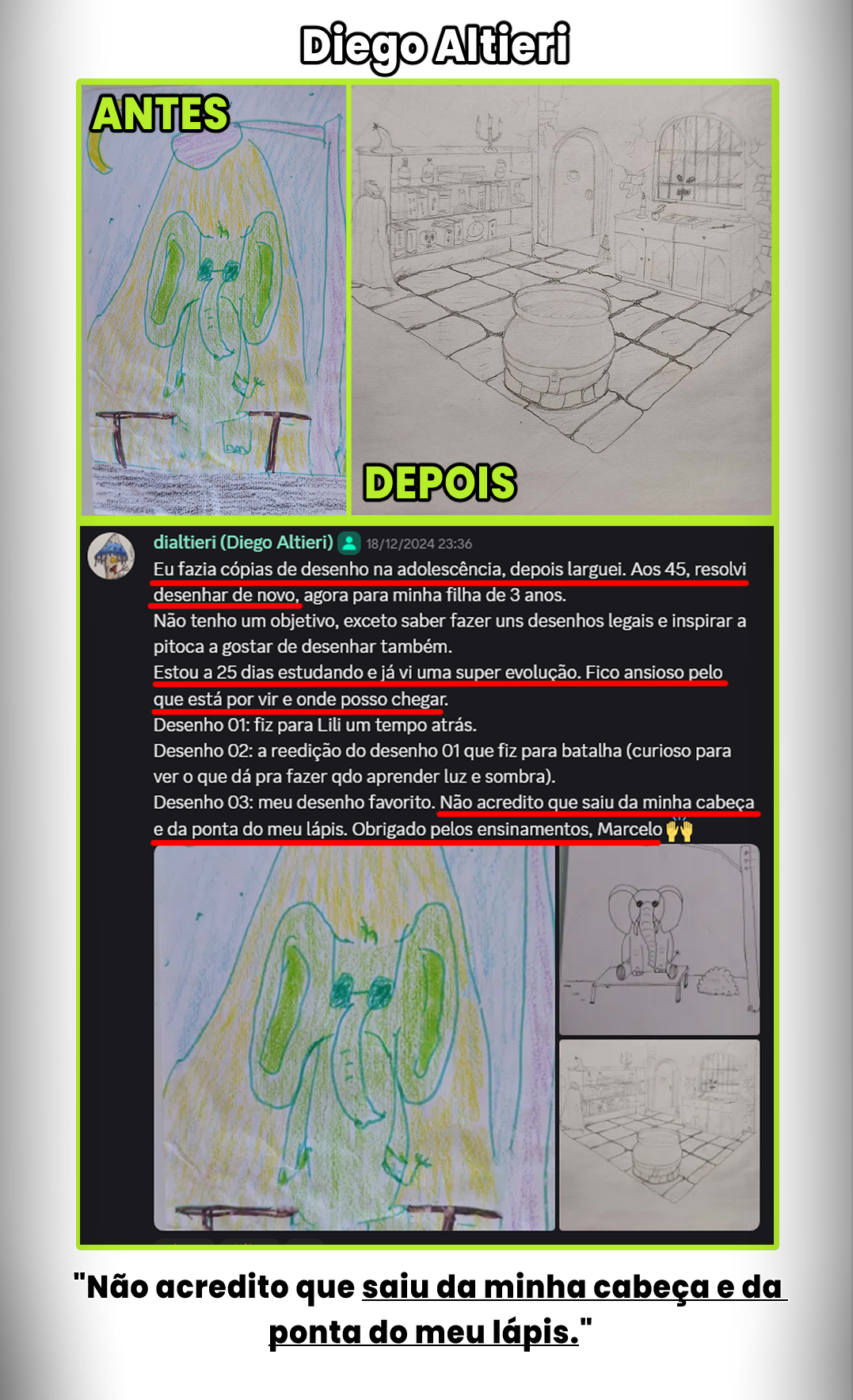 Hoje, como fundador do Desenho Mestre, meu objetivo é encurtar o seu caminho e te dar a técnica que levei anos para simplificar.